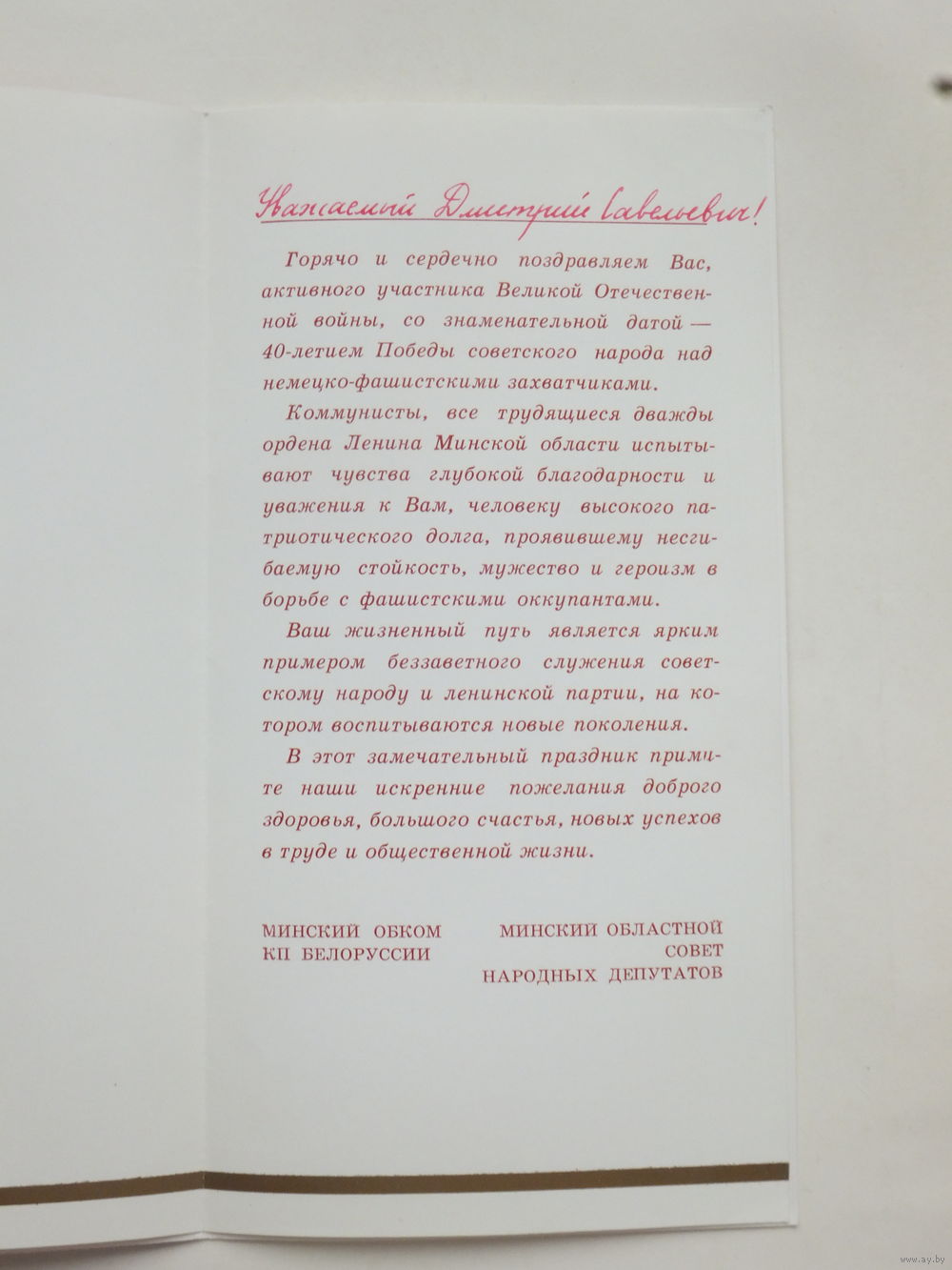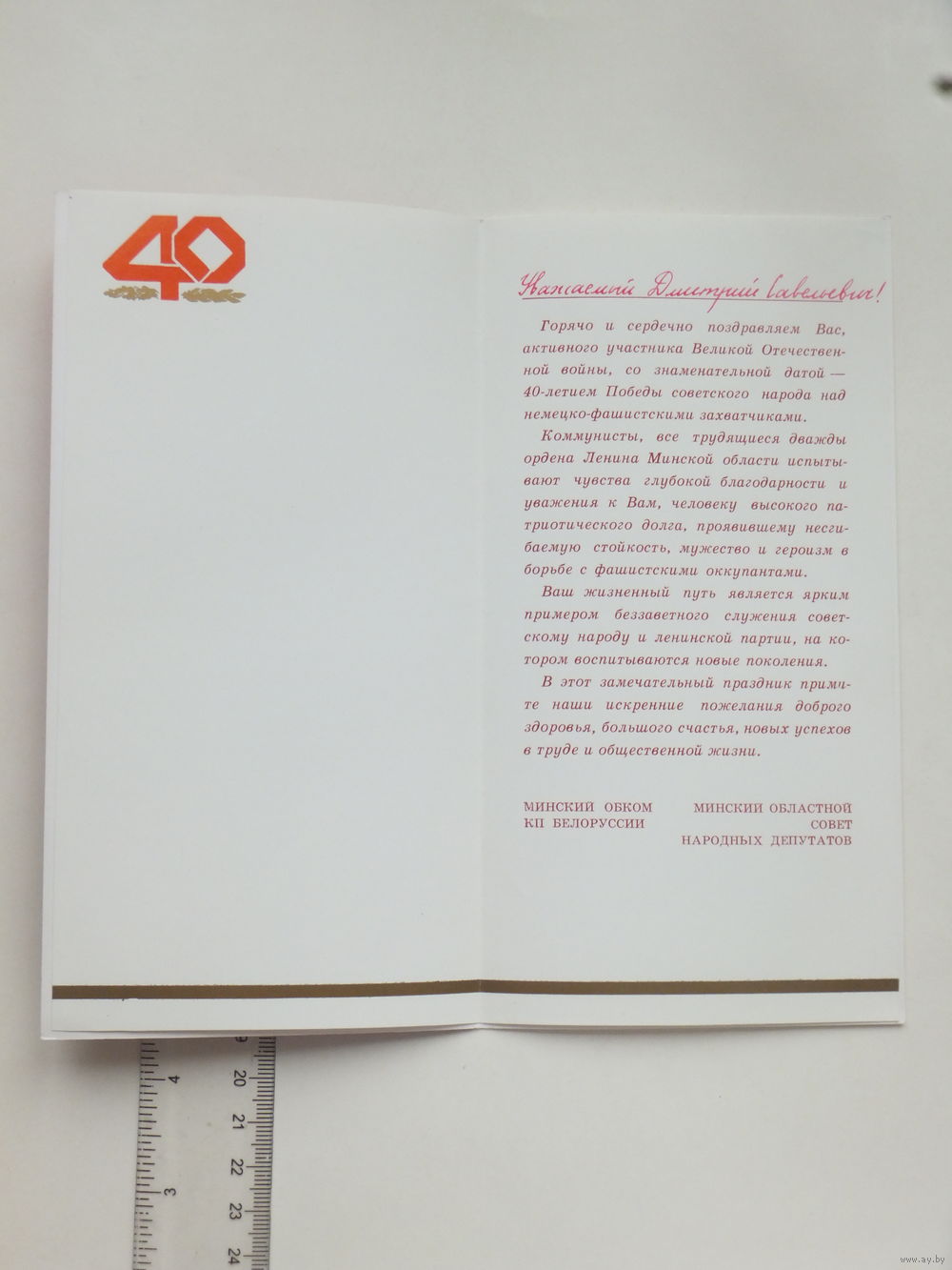 Поздравление 40 лет Победы Минск 1985