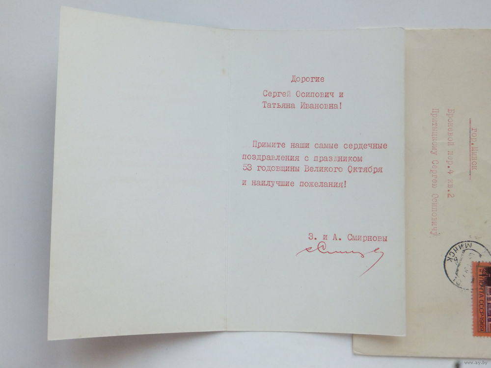 Поздравление 53 годовщина октября Минск 1970 г