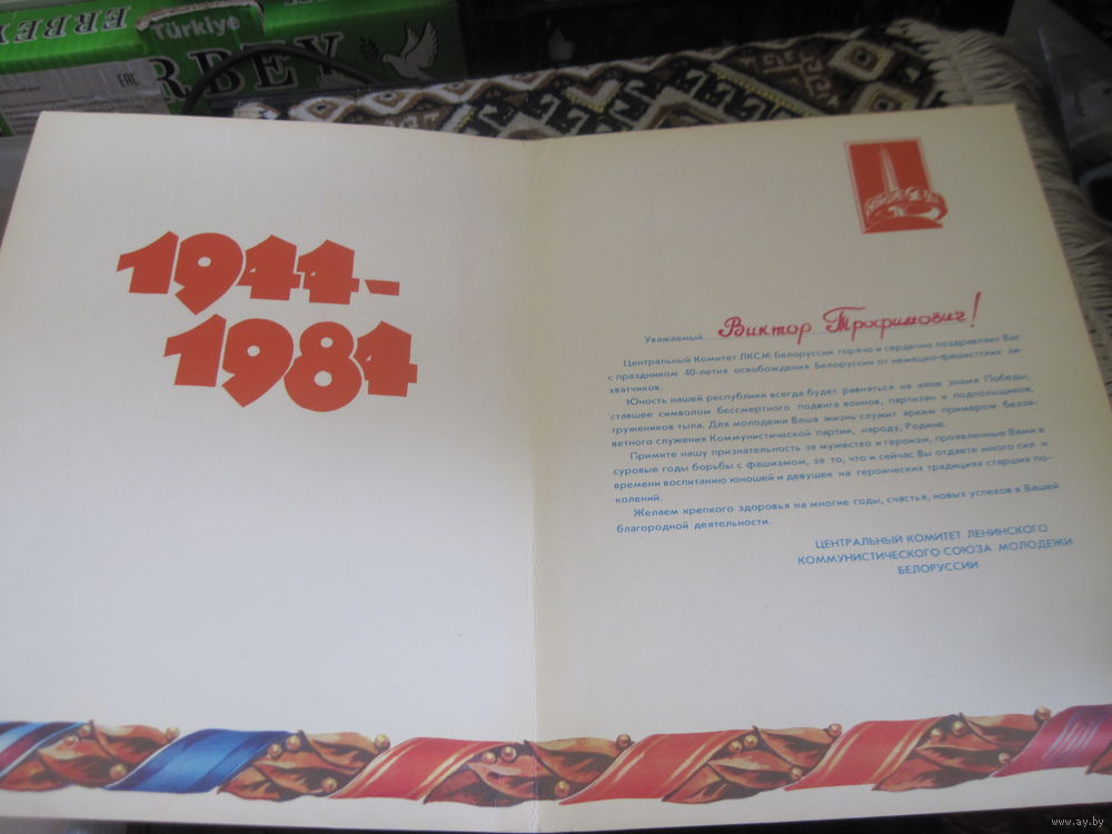 Поздравление от ЦК ЛКСМБ 1984 г. с рубля!
