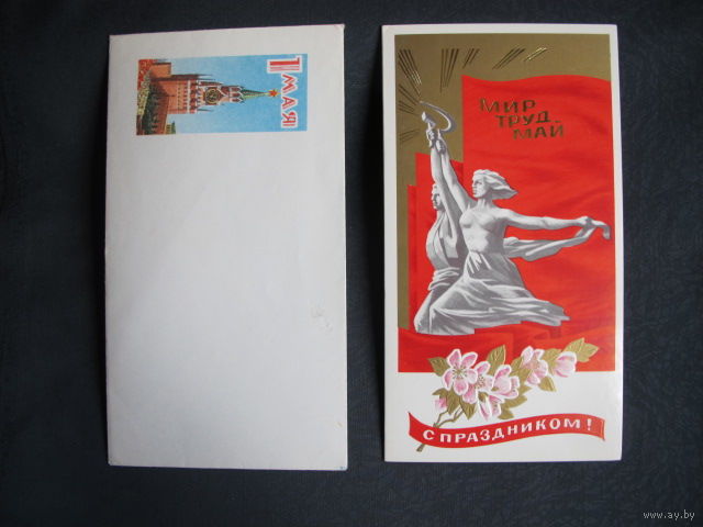 Поздравление с 1 мая. Двойная, чистая с вкладышем, в конверте 19