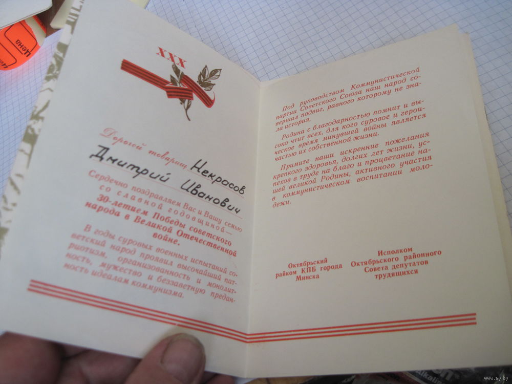 Поздравление с 30-летием Победы с рубля!