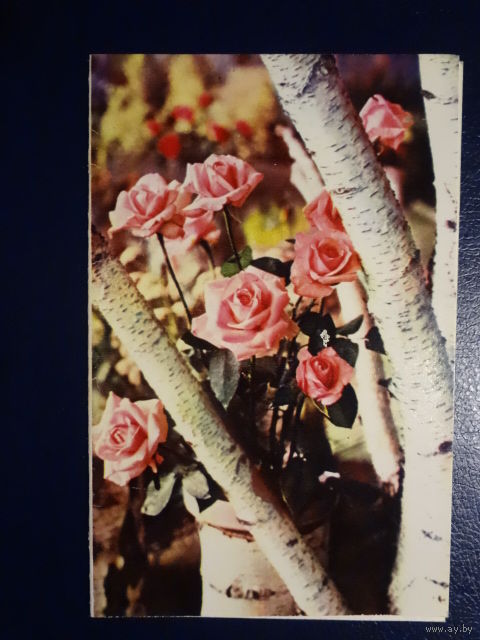 Поздравляем! Розы, береза. 1971 г. подписанная. двойная.