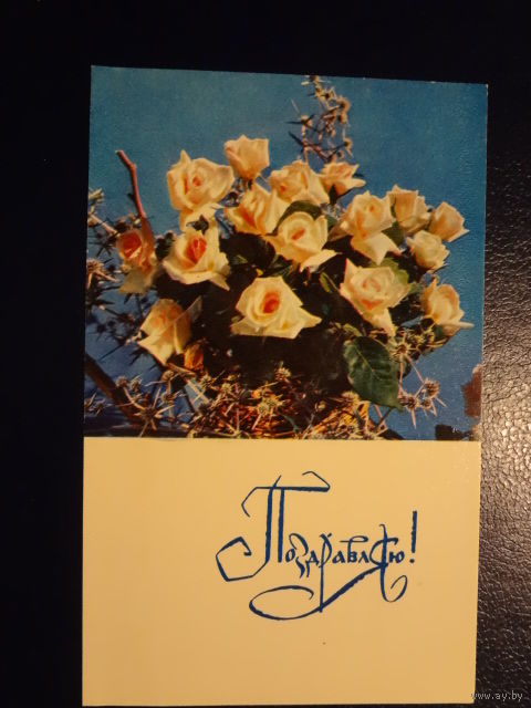 Поздравляю! Букет роз. 1970 г. подписанная.