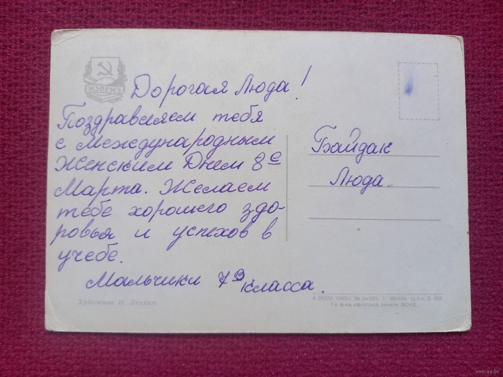 Поздравляю! Левянт 1963 г. Кр1.