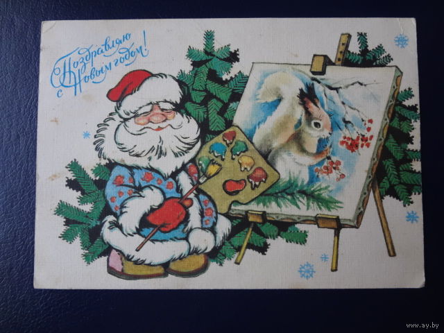 Поздравляю с Новым годом! 1992 г. Дед Мороз художник. подписанная.
