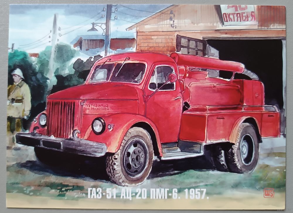 Пожарные автомобили. Худ. В.В.Шарков. Авторская открытка.