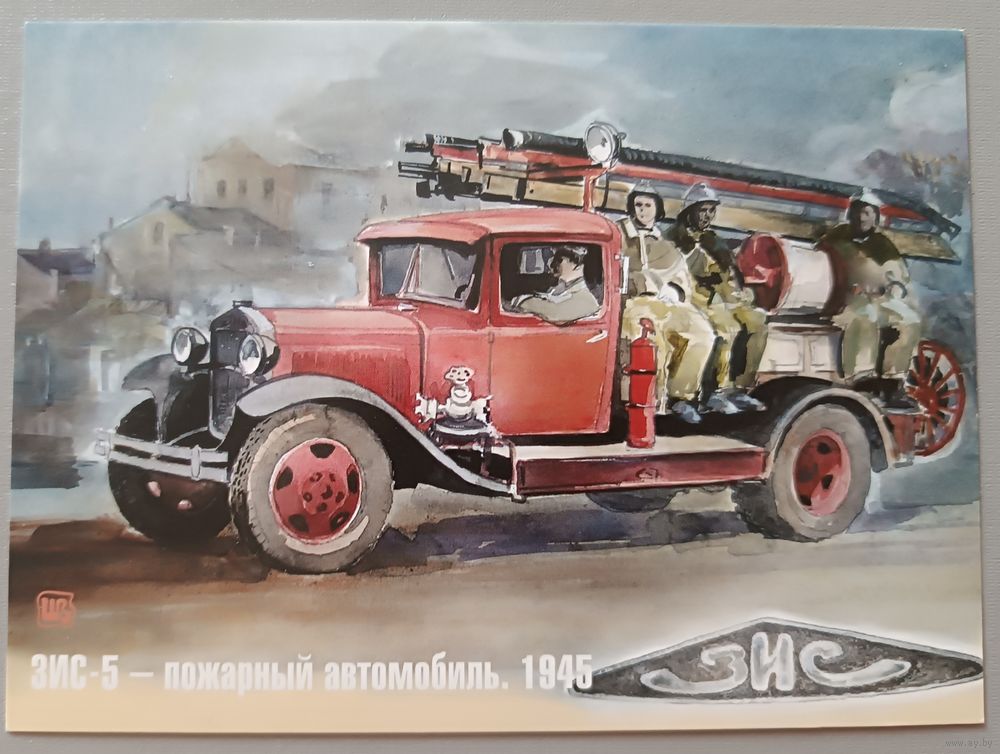 Пожарные автомобили. Худ. В.В.Шарков. Авторская открытка