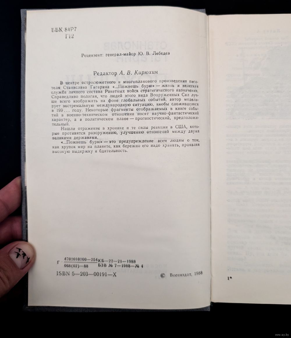 В центре остросюжетного и многопланового произведения писателя Станислава Гагарина ". . . Пожнешь бурю" - жизнь и нелегкая служба личного состава Ракетных войск стратегического назначения. Справедливо полагая, что людей этого вида Вооруженных Сил лучше всего изображать на фоне глобальных событий, автор моделирует экстремальную международную ситуацию, якобы сложившуюся в 199. . . году. Некоторые фрагменты отображаемых в книге событий в военно-техническом отношении носят научно-фантастический характер, а в политическом плане - прогностический, предположительный. Нашли отражение в хронике и те силы реакции в США, которые противятся разоружению, улучшению отношений между двумя великими державами. ". . . Пожнешь бурю" - это предупреждение всем людям о том, как хрупок мир на планете, Как ежно его надо хранить, проявляя высокую выдержку и бдительность.