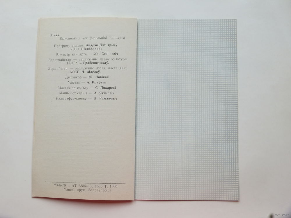 Праграма дзiцячага канцэрта Мiнск 1970 г