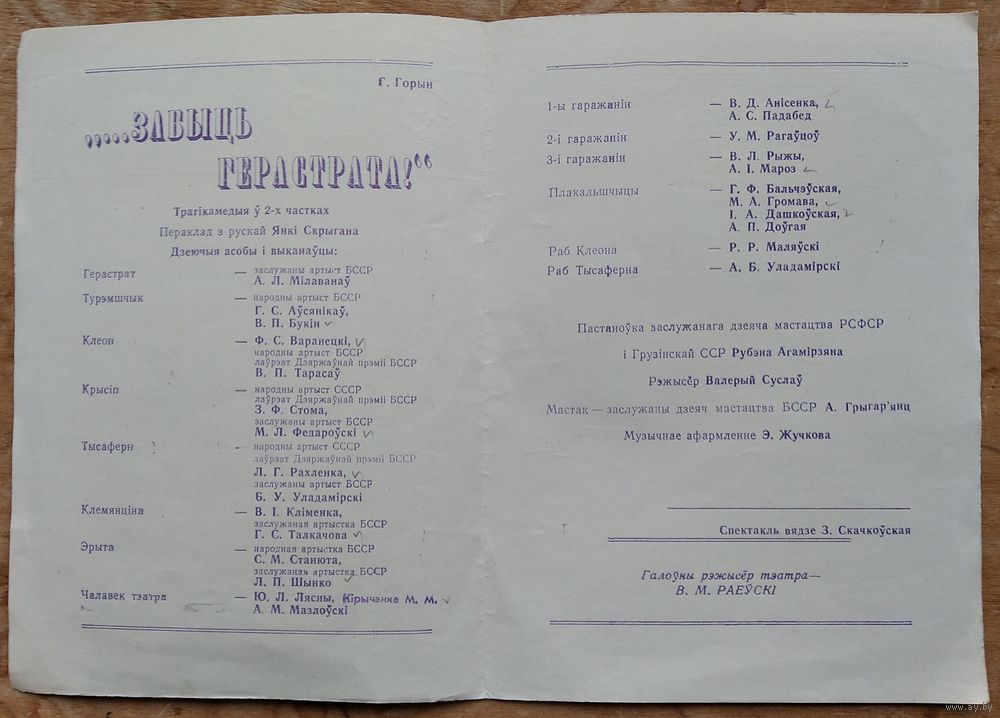 Праграма спектаклю "Забыць Герастрата". Акадэмiчны тэатр iмя Янкі Купалы. 1972 г
