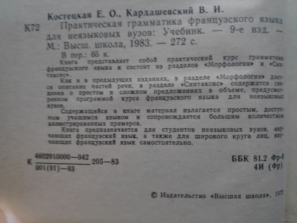 Книга представляет собой практический курс грамматики французского языка и состоит из разделов «Морфология» и «Синтаксис». Как и в предыдущих изданиях, в разделе «Морфология» дается описание частей речи, в разделе «Синтаксис» содержатся сведения о простом и сложном предложениях в объеме, предусмотренном программой курса французского языка для неязыковых вузов. Содержащийся в книге материал излагается простым, доступным учащимся языком и сопровождается большим количеством иллюстрированных примеров. Книга предназначается для студентов неязыковых вузов, изучающих французский язык, а также для широкого круга лиц, изучающих французский язык самостоятельно.