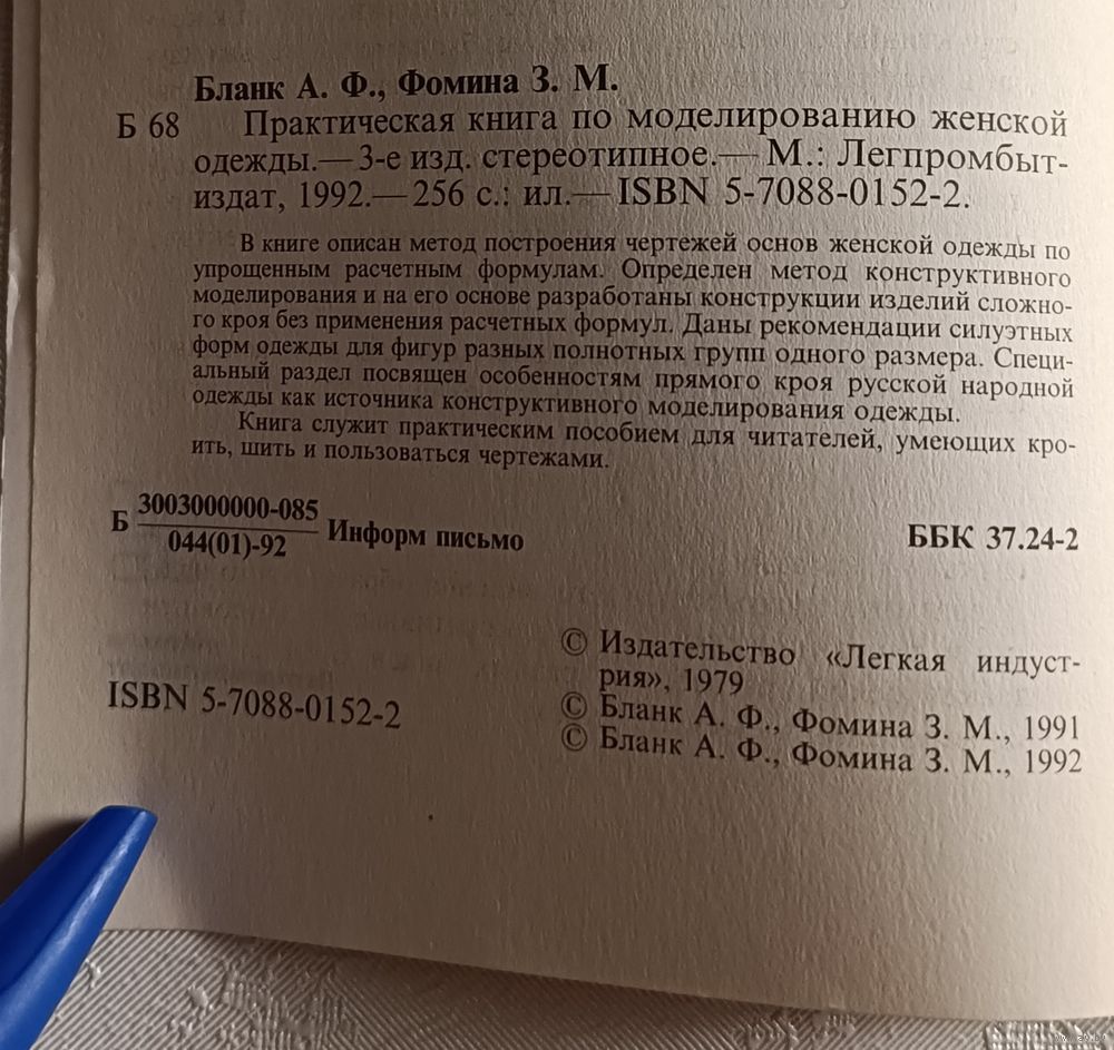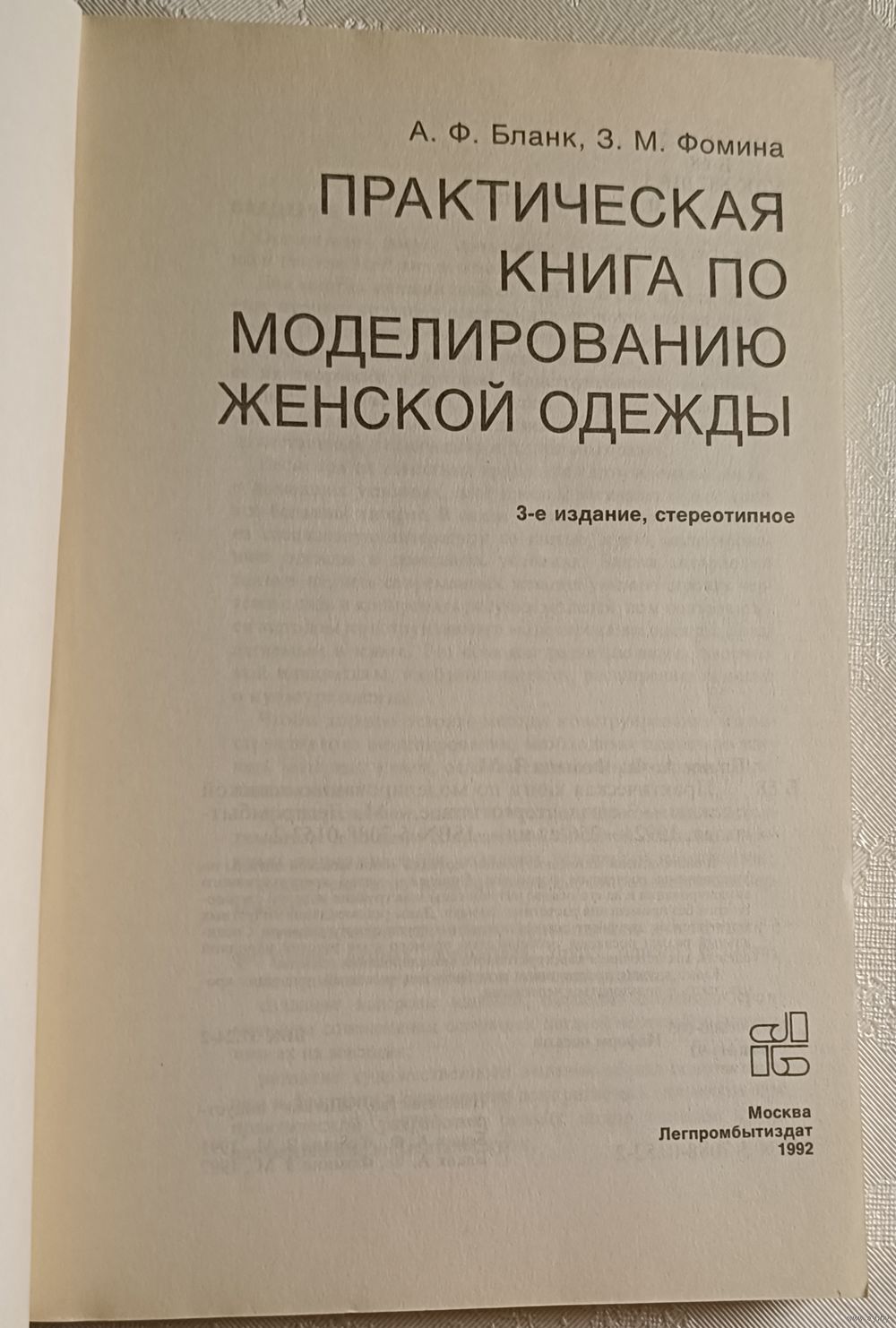 Бланк А. Ф., Фомина З. М. Практическая книга по моделированию женской одежды. - 3-е изд. стереотипное. М.: Легпромбыт-издат, 1992. — 256 с.: ил., мягкая обложка, чуть увеличенный формат.