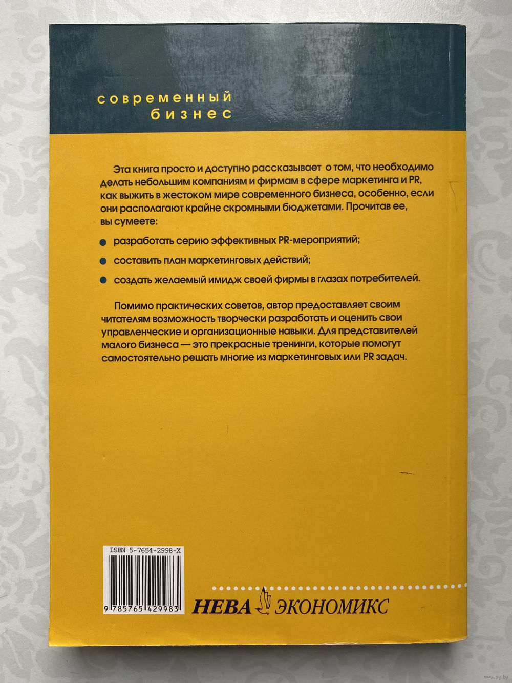 Книга известного маркетолога, призвана помочь начинающему предпринимателю разобраться в деталях маркетинговых действии, PR-мероприятий и развить в себе навыки успешного руководителя, который умеет пользоваться всеми современными средствами воздействия на рынок. Продуманные практические советы автора позволят научиться правильно организовать работу по продвижению своего товара, исследованию рынка в условиях ограниченного бюджета малого предприятия и добиться наилучших результатов в бизнесе.