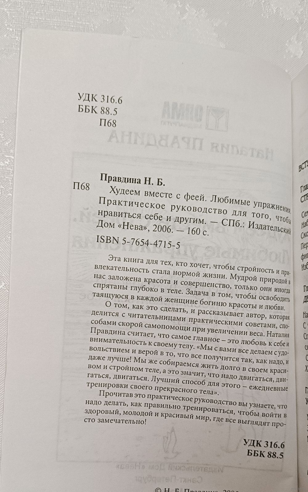 Правдина Наталия. Худеем вместе с феей. Любимые упражнения Практическое руководство для того, чтобы нравиться себе и другим. СПб., Издательский Дом «Нева», 2006. - 160 с., мягкая обложка, обычный формат.