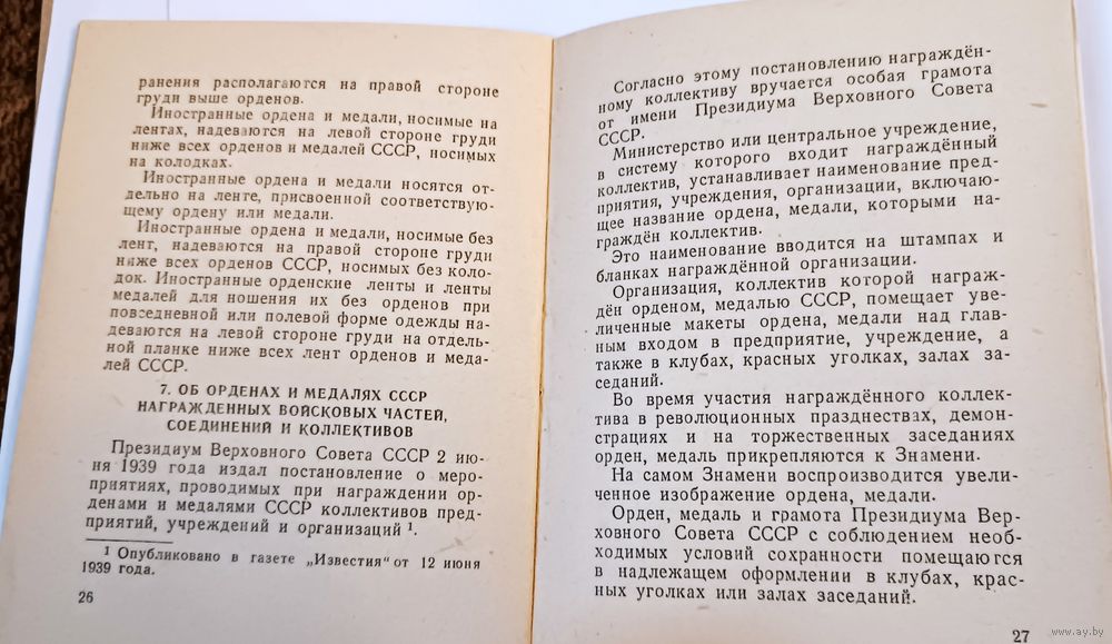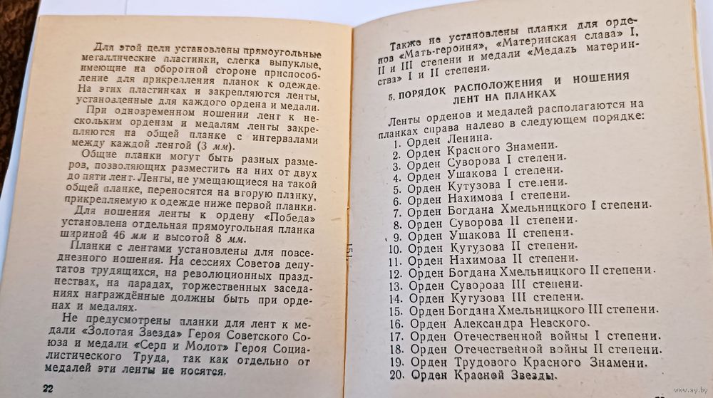 Правила ношения орденов, медалей, нагрудных знаков и орденских лент. 1948 год. Всё лоты с 1 рубля!.