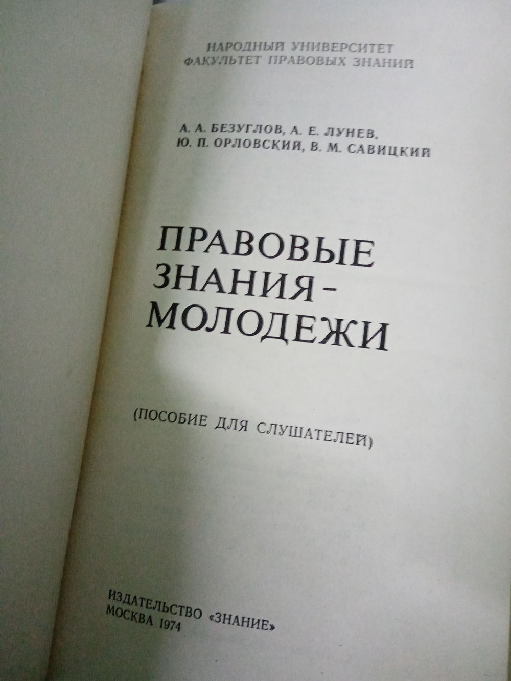 Правовые знания молодежи. Факультет правовых знаний. 1974 год