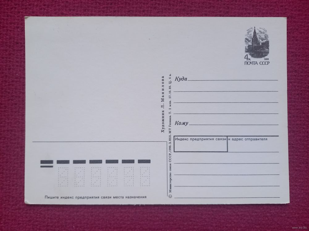 Праздничная открытка! Манилова 1990 г. Чистая.