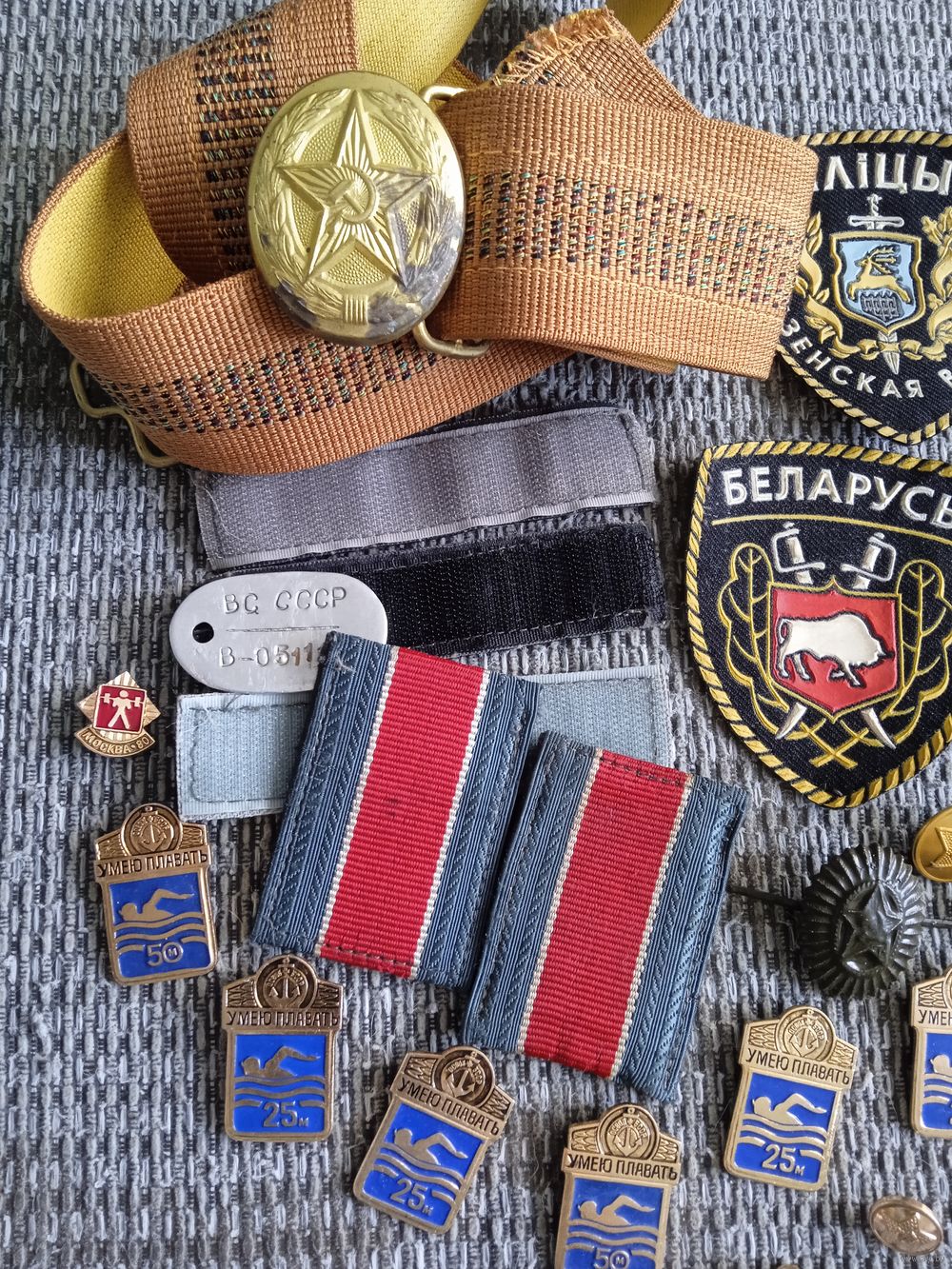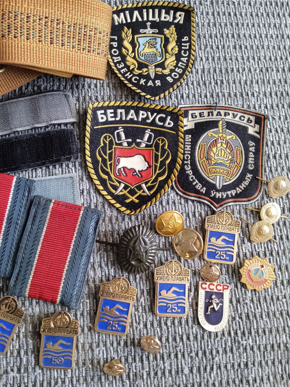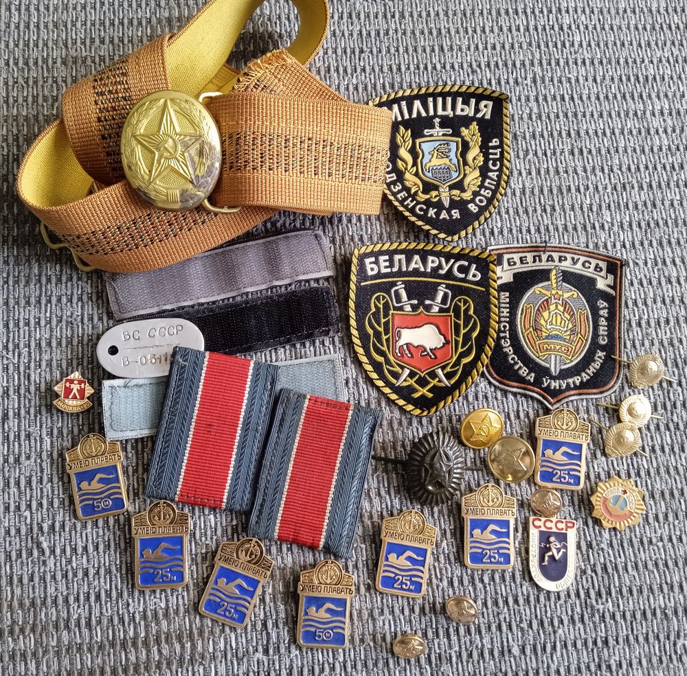 Предметы коллекционирования. Шевроны, значки, ремень, пуговицы.