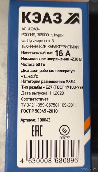 Предохранитель автомат ПАР-16, 16А КЭАЗ, РФ