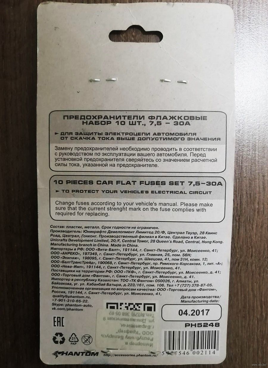 Предохранители флажковые 10шт HANTOM PH5248