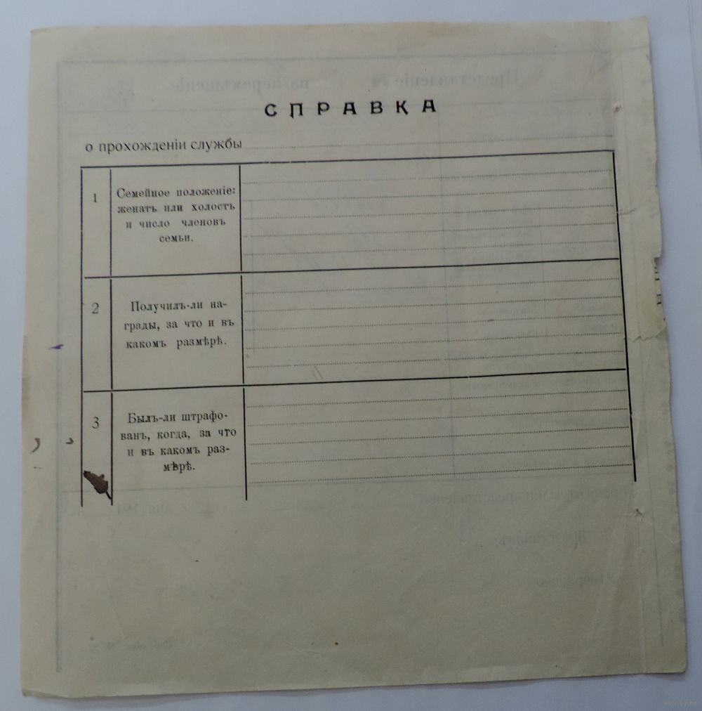Представленiе на Перемещенiе 1918 г. для старосты ст. Слоним. Размер документа 18-19 см.
