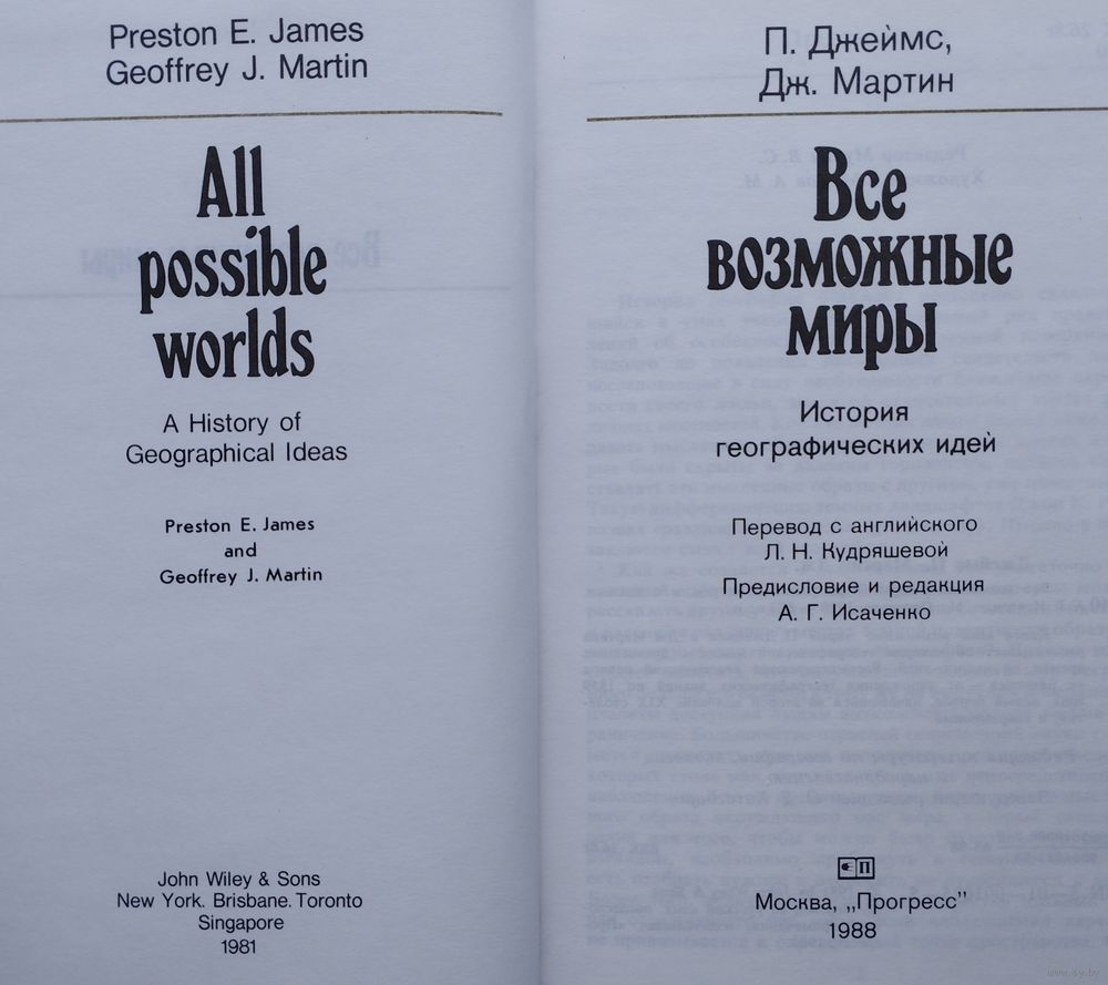 Тираж 30000 экз. 672 стр. Книга "Все возможные миры" П. Джеймса и Дж. Мартина рассказывает об истории географической мысли с древнейших времен до наших дней. Рассматриваются классический период ее развития - от зарождения географических знаний до 1859 года, новый период, начавшийся во второй половине XIX столетия, и современный.