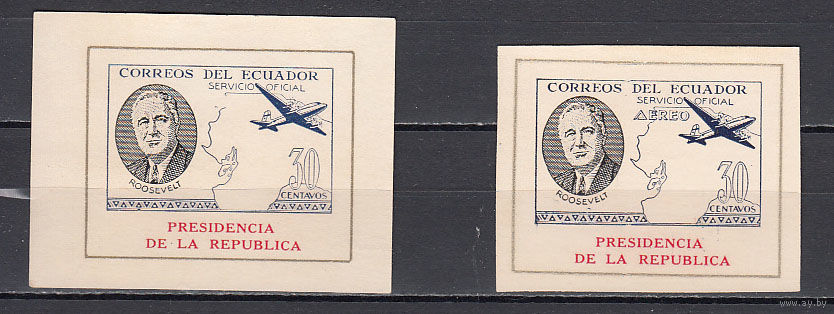 Президент Рузвельт. Эквадор. 1949. 2 блока. Michel N 186-187 (10,0 е).