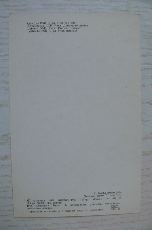 Прибалтика. Латвийская ССР. Рига. Дворец пионеров; 1976, чистая (9*14см).