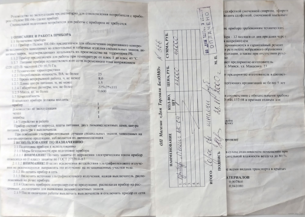 Прибор "Пеленг ВК-04" (ультрафиолетовая лампа)