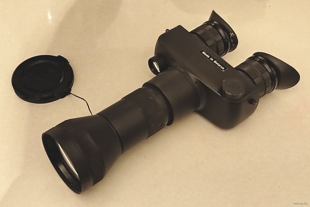 Прибор производства РБ, ЭОП - РФ. Поколение 2+, ЭОП не посаженный (прибор хранился всегда с закрытым объективом и в темноте, действию яркого света не подвергался даже в выключенном состоянии, в поле в безлунную ночь видно хорошо. В лесу, где небо полностью закрыто кронами деревьев, не видно почти ничего, но там условиях и поколение 3 вряд ли вытянет.
