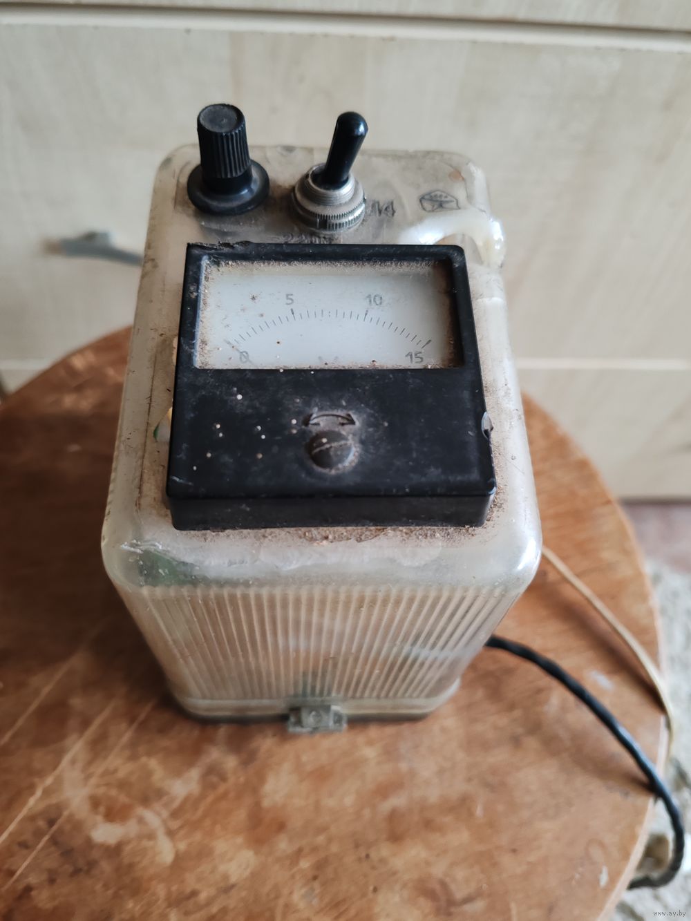 Кокой то прибор ссср, подключали проблесковый маячок работает. Для чего этот прибор не знаем. Дырка на корпусе от паяльника, дед положил горячий.