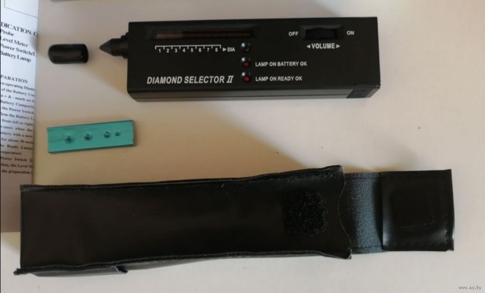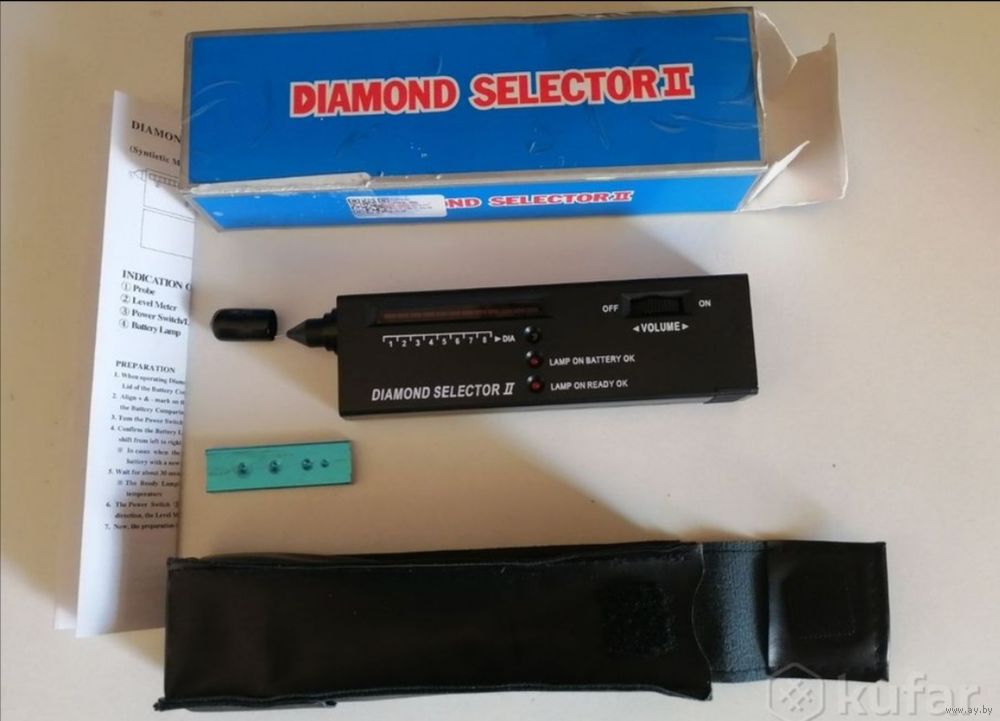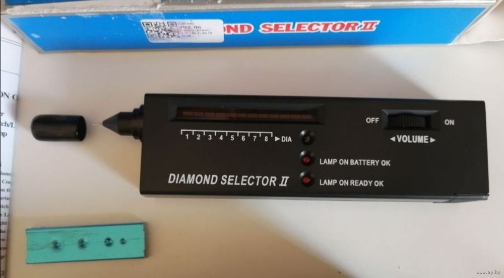 Портативный тестер DIAMOND SELECTOR 2, надёжно отличает бриллиант от фианитов и репликантов, копий, бриллиант доставать из оправы не надо, реагирует мгновенно светомузыкой до красной зоны на дисплее и прекрасным звуком, на копию никак не реагирует.... Он новый, проверенный, работает от кроны идет в комплекте. ВЕЩЬ НАДЁЖНАЯ.... ОПЛАТА НА КАРТУ, ВЫСЫЛАЮ ЛЮБОЙ ПОЧТОЙ В ДЕНЬ ОПЛАТЫ... НАЛОЖЕННЫМ НЕ ОТПРАВЛЯЮ, ИЗВИНИТЕ... СПАСИБО