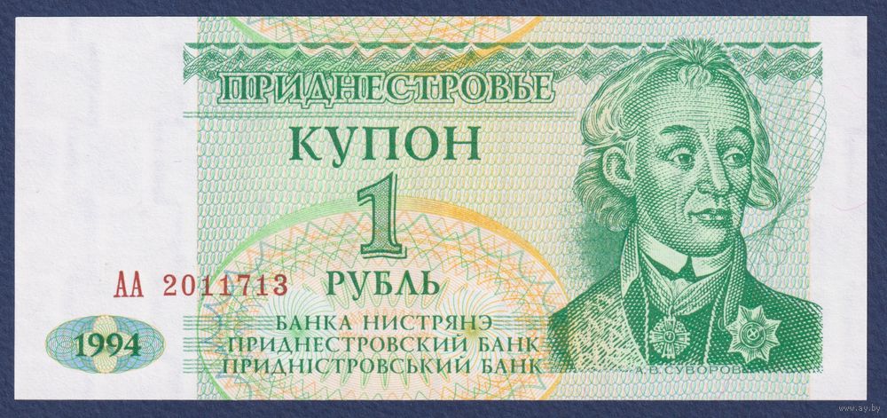 Приднестровье, 1 рубль 1994 г., P-16 (АА, генералиссимус Александр Суворов), UNC