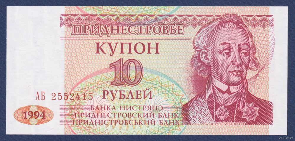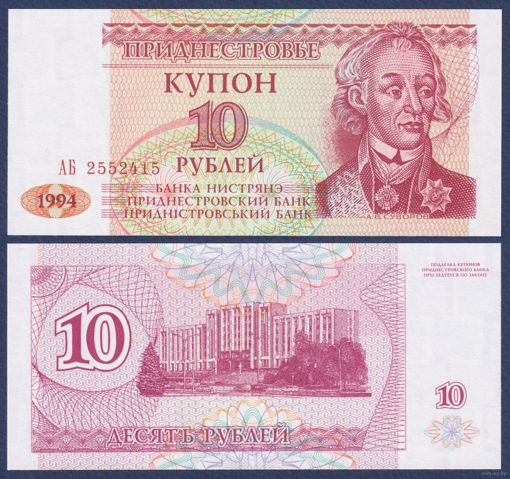 Приднестровье, 10 рублей 1994 г., P-18 (АА, генералиссимус Александр Суворов), UNC