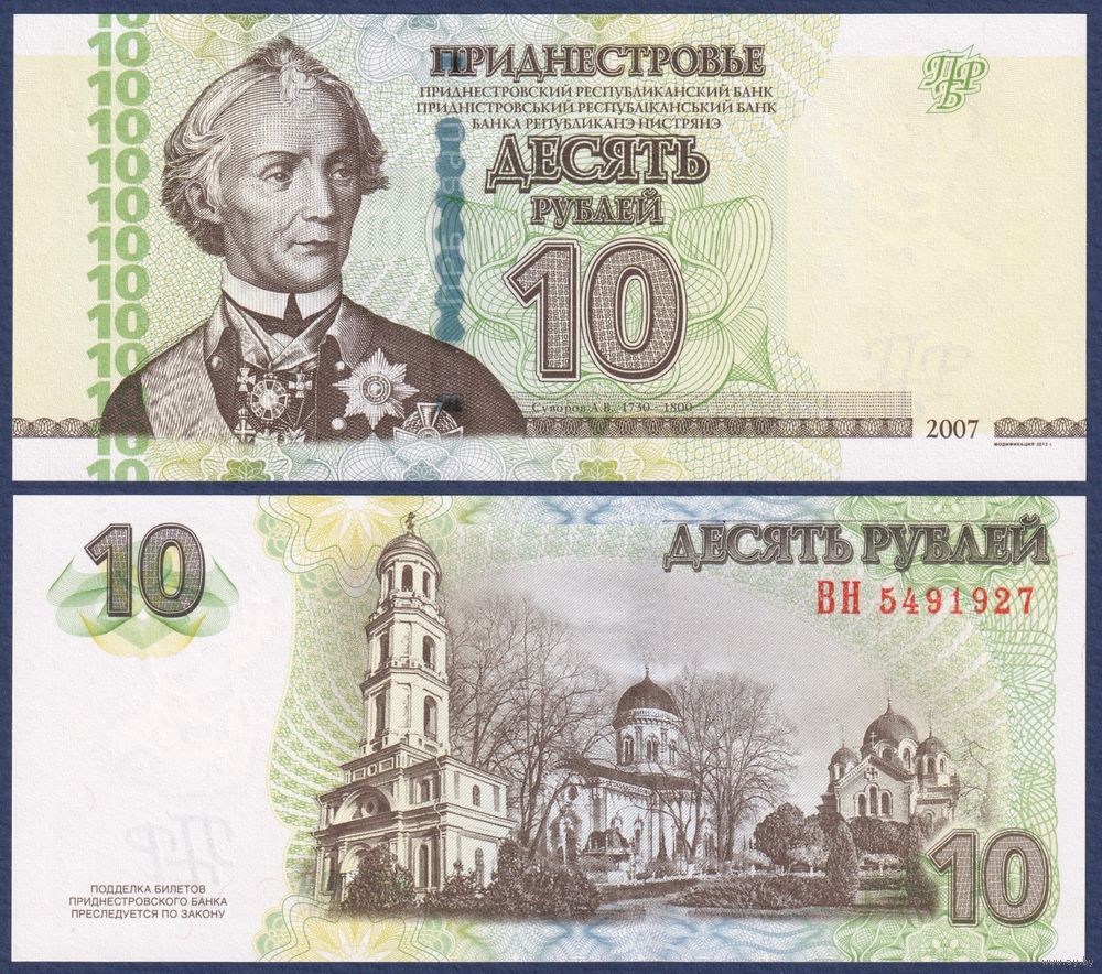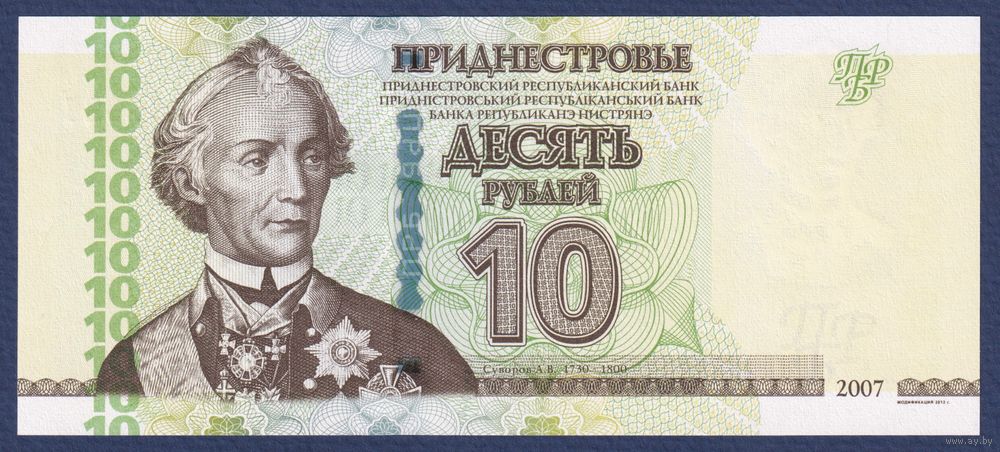 Приднестровье, 10 рублей 2007 (2012) г., P-44b (ВН, генералиссимус Александр Суворов), UNC
