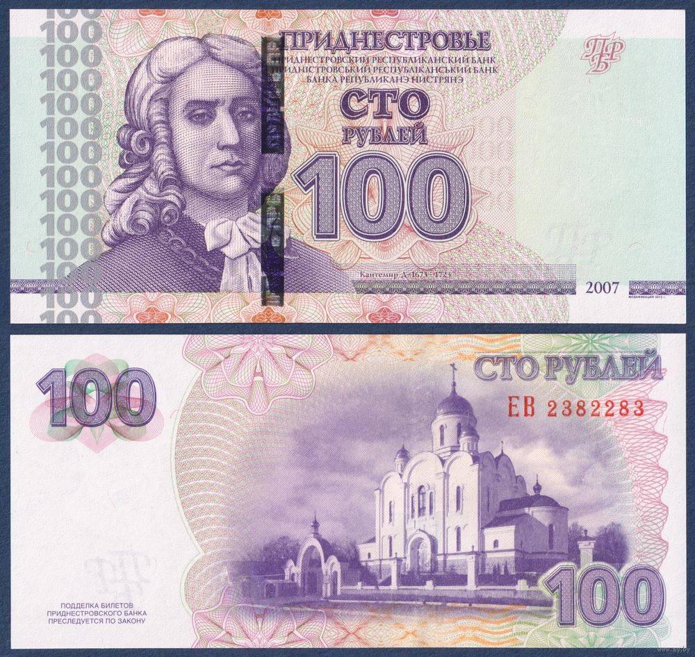 Приднестровье, 100 рублей 2007 (2012) г, P-47b (ЕВ, господарь Дмитрий Константинович Кантемир, церковь Рождества Христова в Тирасполе), UNC
