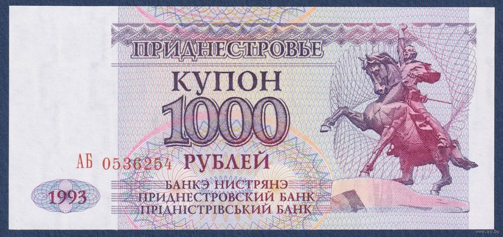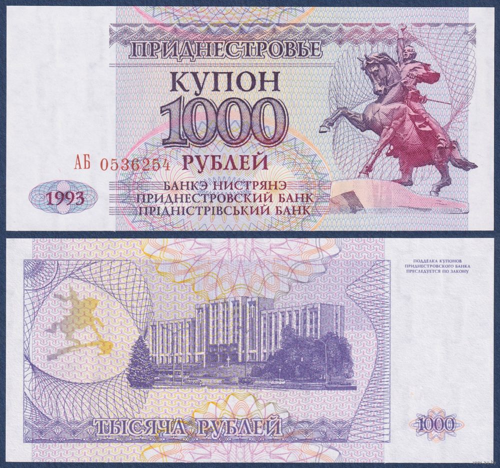 Приднестровье, 1000 рублей 1993 г., P-23 (АБ, конная статуя генераллиссимуса Александра Суворова), UNC