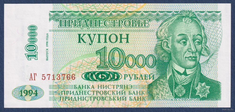 Приднестровье, 10000 рублей 1998 г., P-29A (АГ, генералиссимус Александр Суворов), UNC