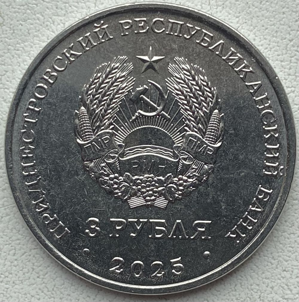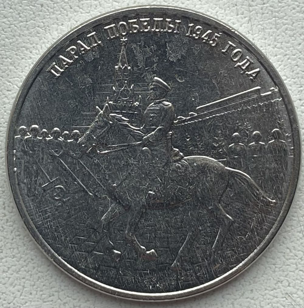 Приднестровье 3 рубля 2025 г. Парад Победы на Красной площади 1945 года. 80 лет. Жуков на коне