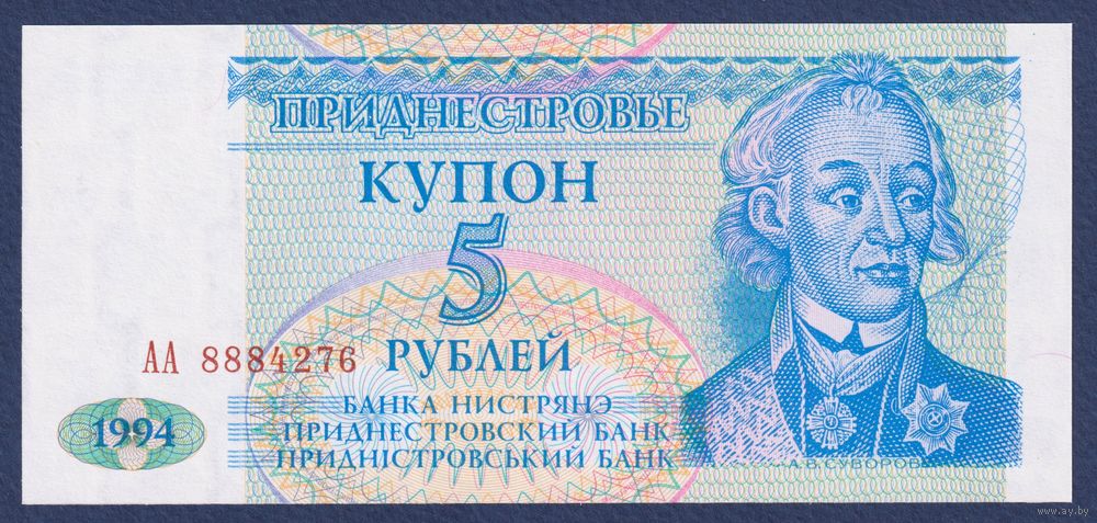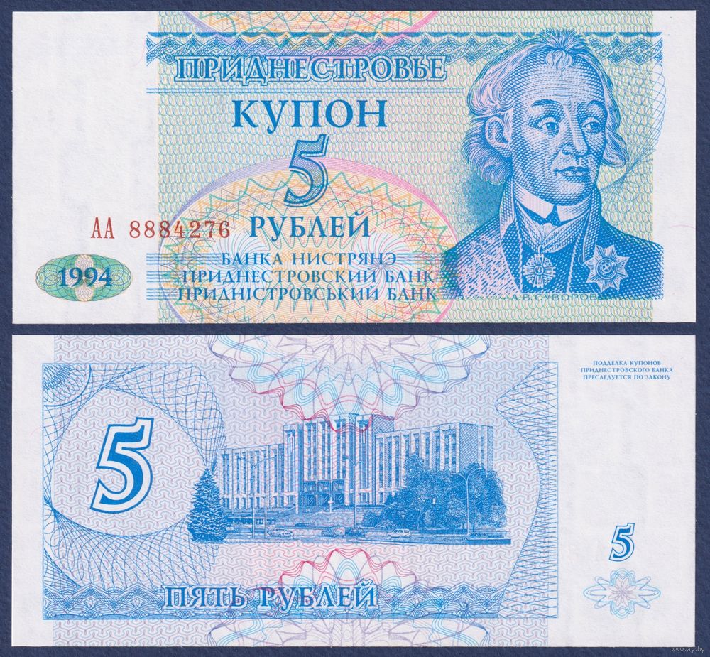 Приднестровье, 5 рублей 1994 г., P-17 (АА, генералиссимус Александр Суворов), UNC