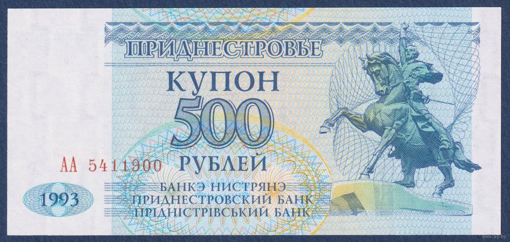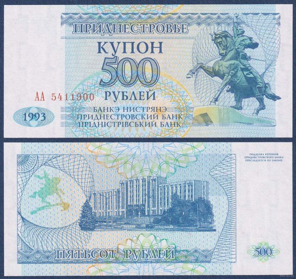 Приднестровье, 500 рублей 1993 г., P-22 (АА, конная статуя генераллиссимуса Александра Суворова), UNC