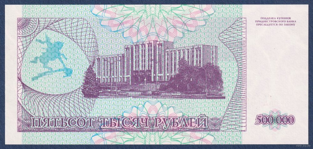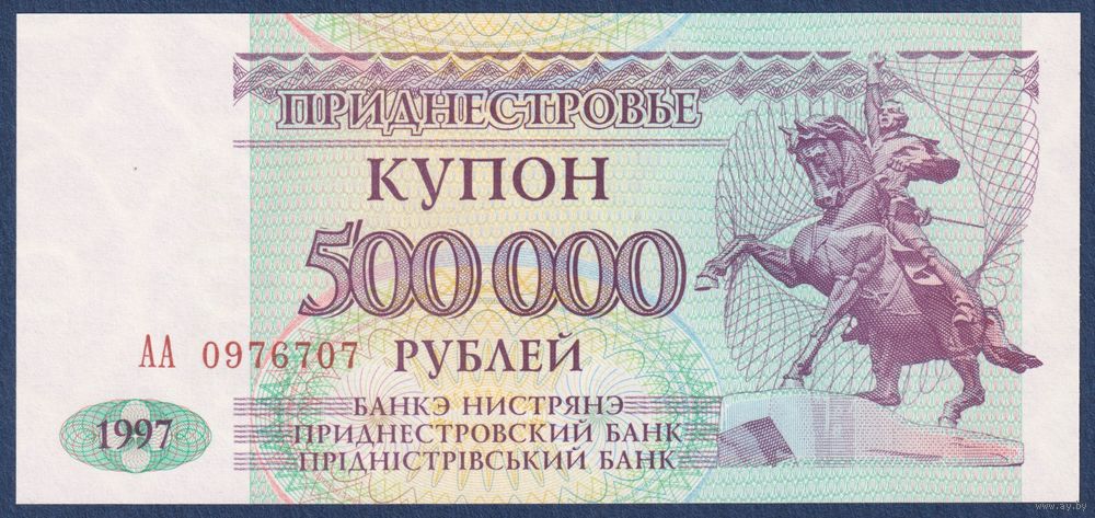 Приднестровье, 500000 рублей 1997 г., P-33 (АА, конная статуя генераллиссимуса Александра Суворова), UNC