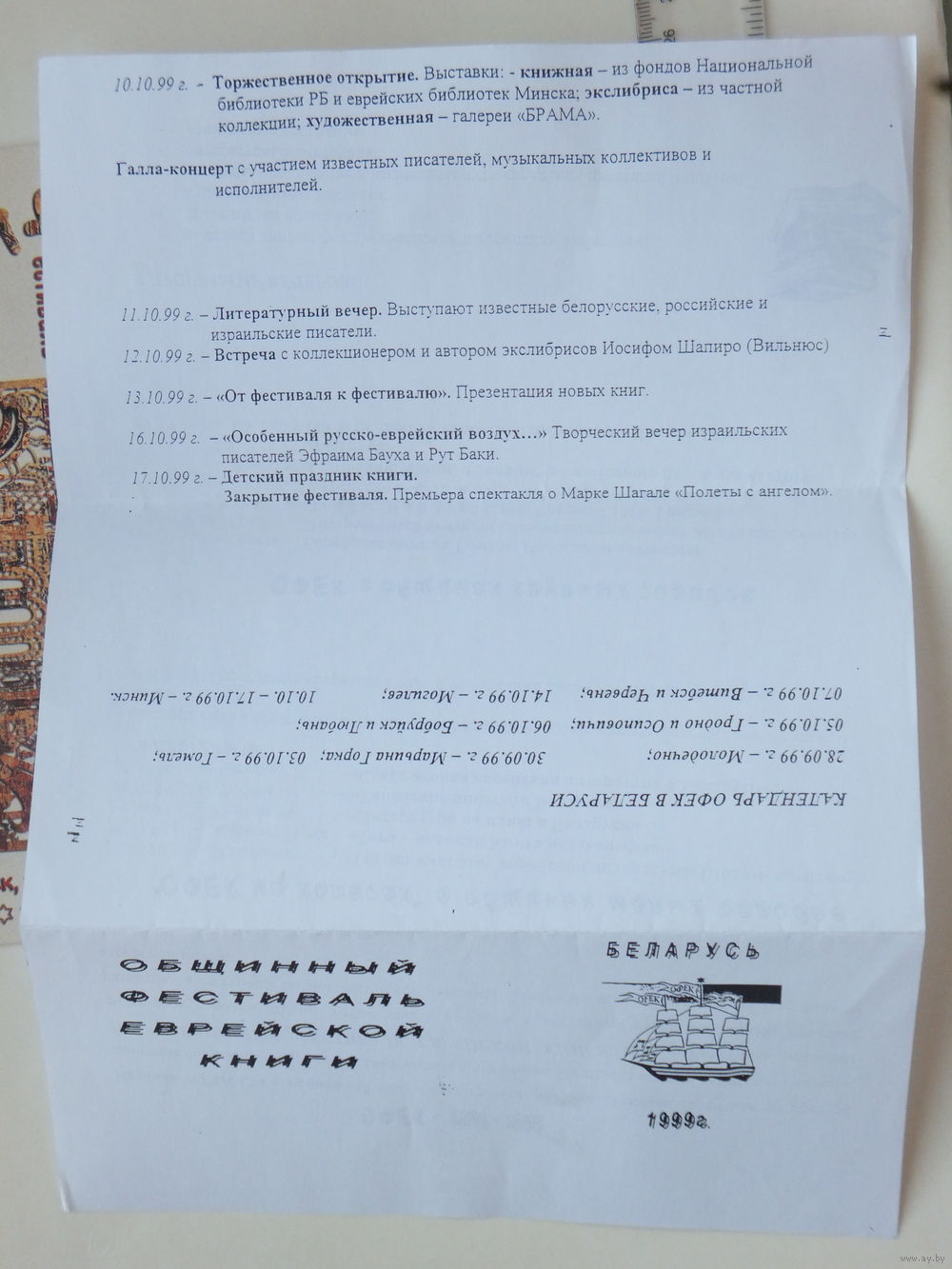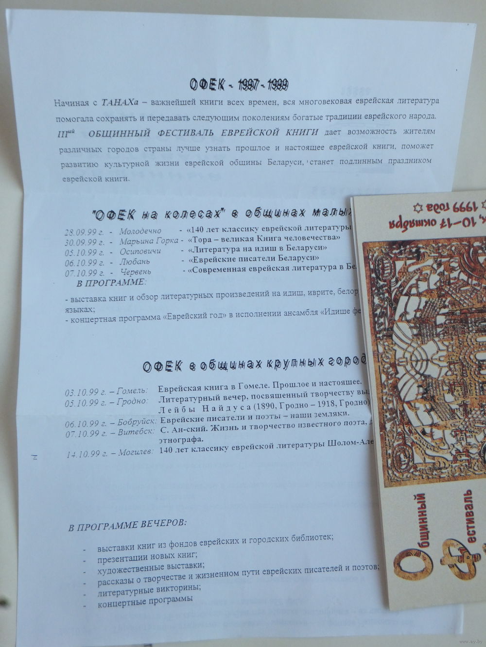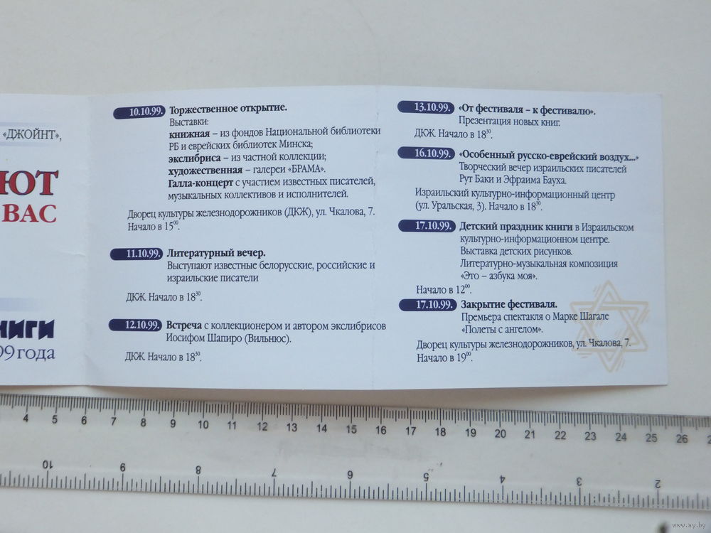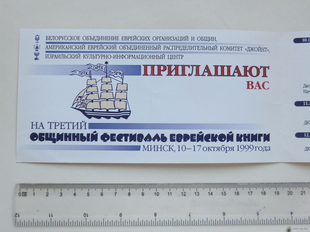 Приглашение фестиваль еврейской книги Минск 1999 г
