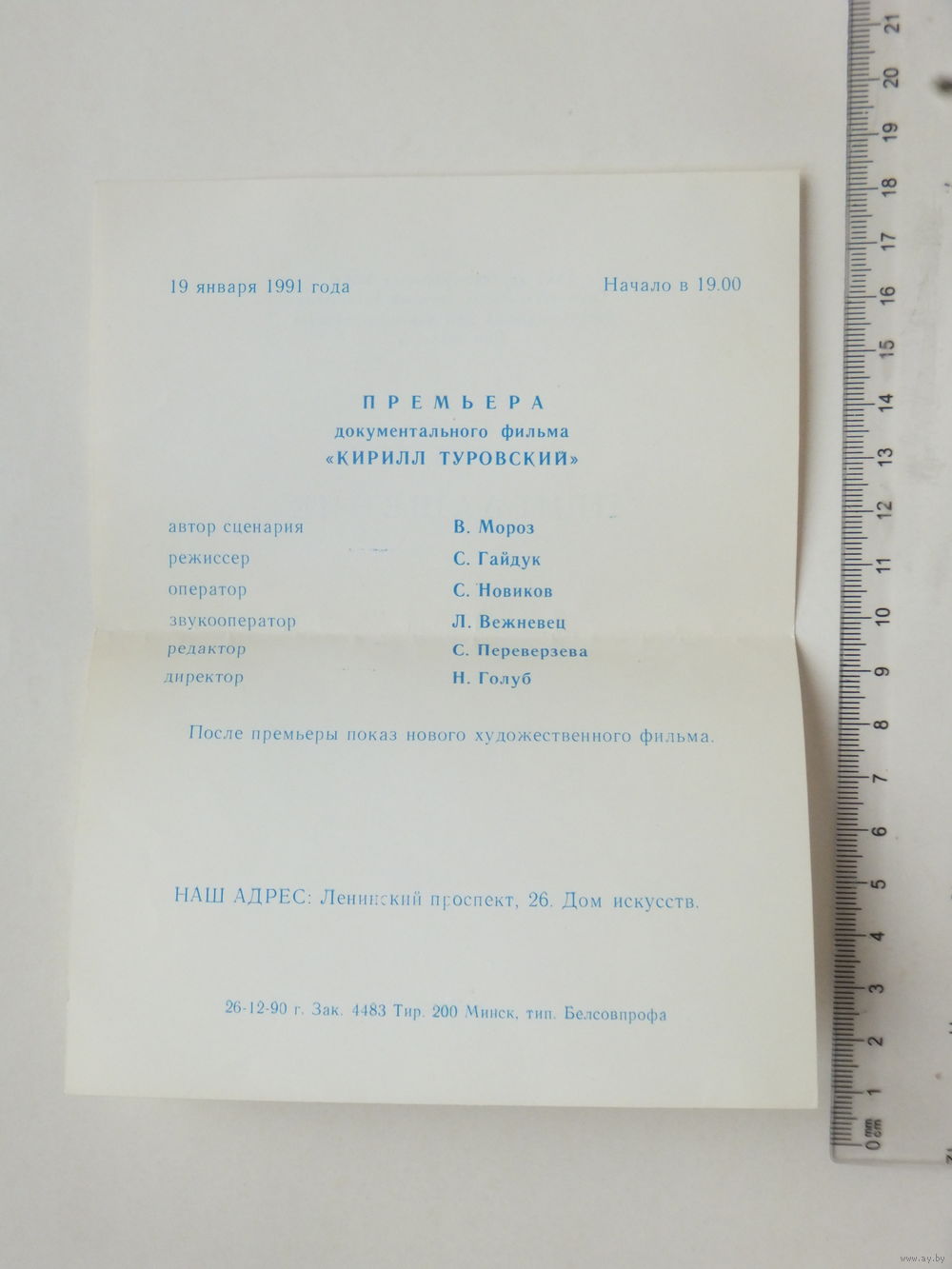 Приглашение фильм Кирилл Туровский Минск 1991 г