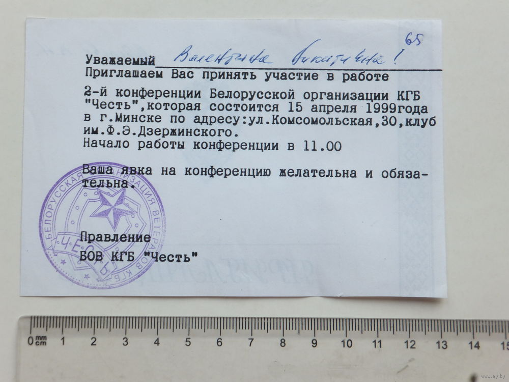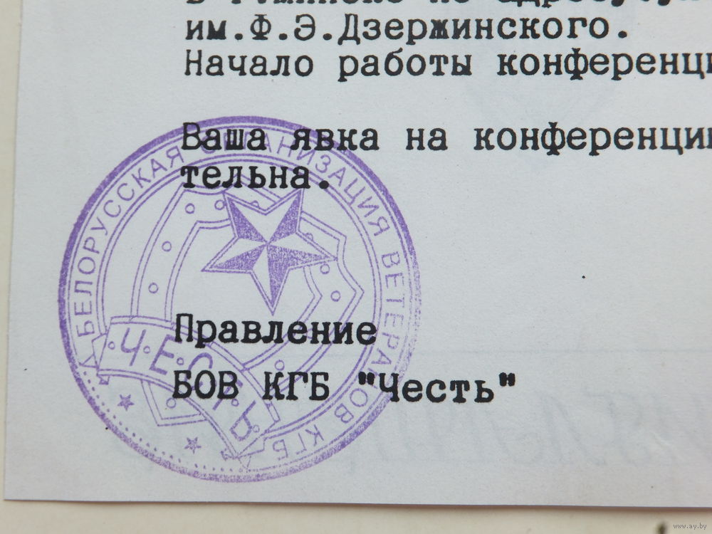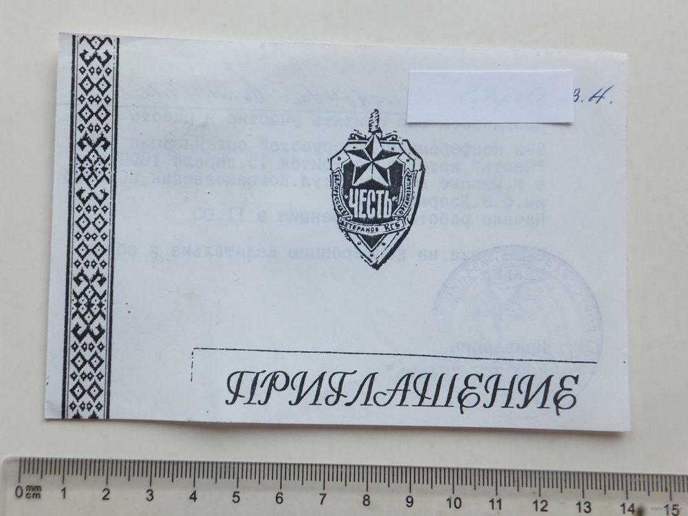 Приглашение КГБ "Честь" Минск 1999г