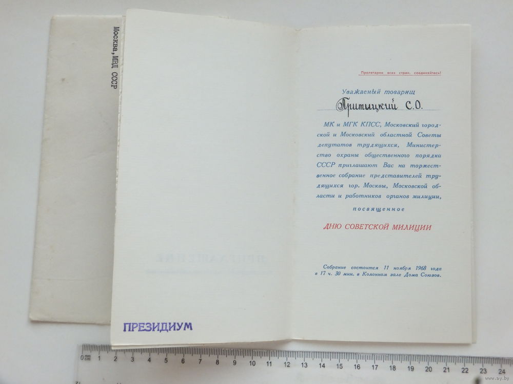 Приглашение МВД СССР 1968 г