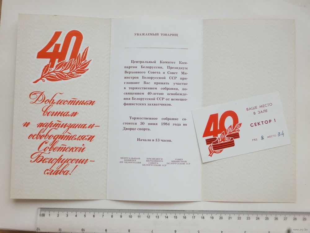 Приглашение на 40-летие освобождения БССР 1984