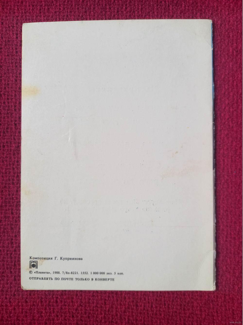 - Почтовые отправления ( Обычным письмом, 1 класс, заказное письмо, мелкий пакет, бандероль ) + 10 % К ТАРИФАМ БЕЛПОЧТЫ!!! ЭТО ЛИЧНО МОЯ ПРИХОТЬ, ЕСЛИ КУПИЛИ ЛОТ ПРОШУ ОПЛАТИТЬ ВСЕ В ПОЛНОМ РАЗМЕРЕ!!!