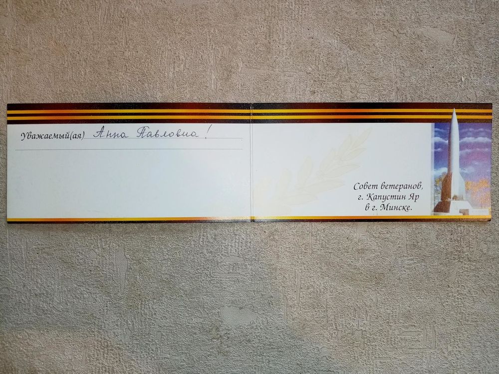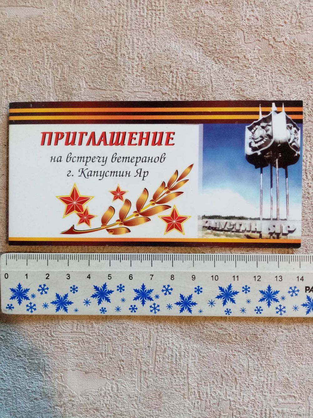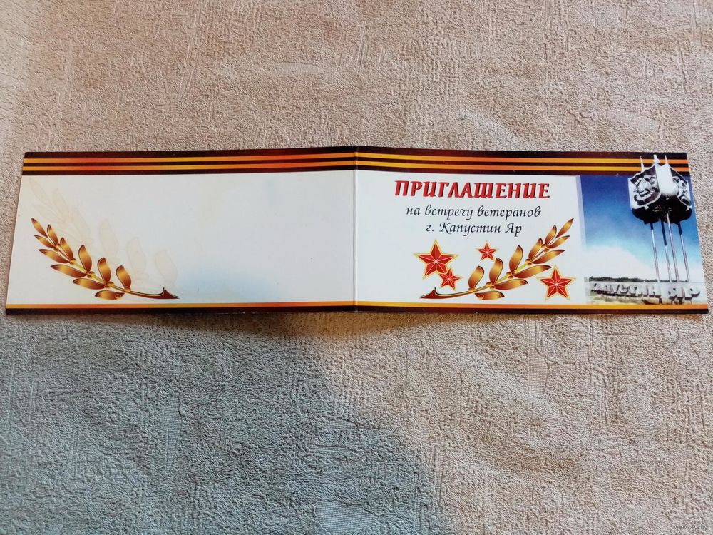 Приглашение на встречу ветеранов г. Капустин Яр в г. Минске 65 лет Победы двойная ум. формат