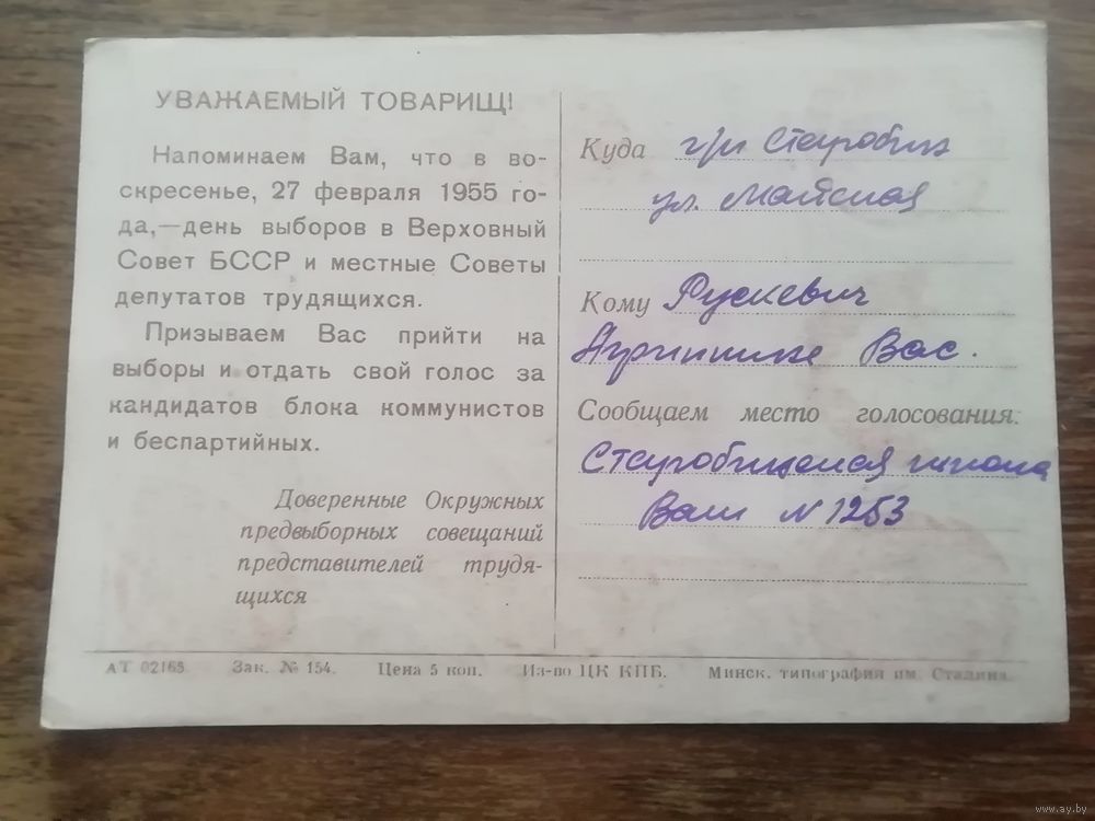 Приглашение на выборы 55г